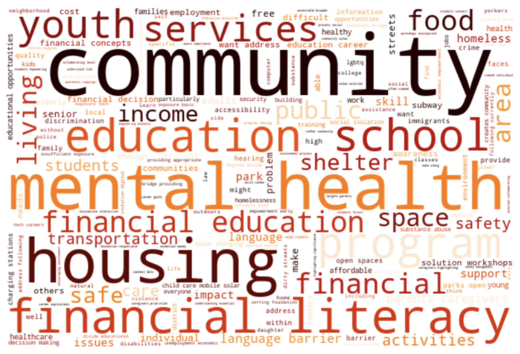 Scroll down to engage with submitted ideas and learn about borough-specific trends.